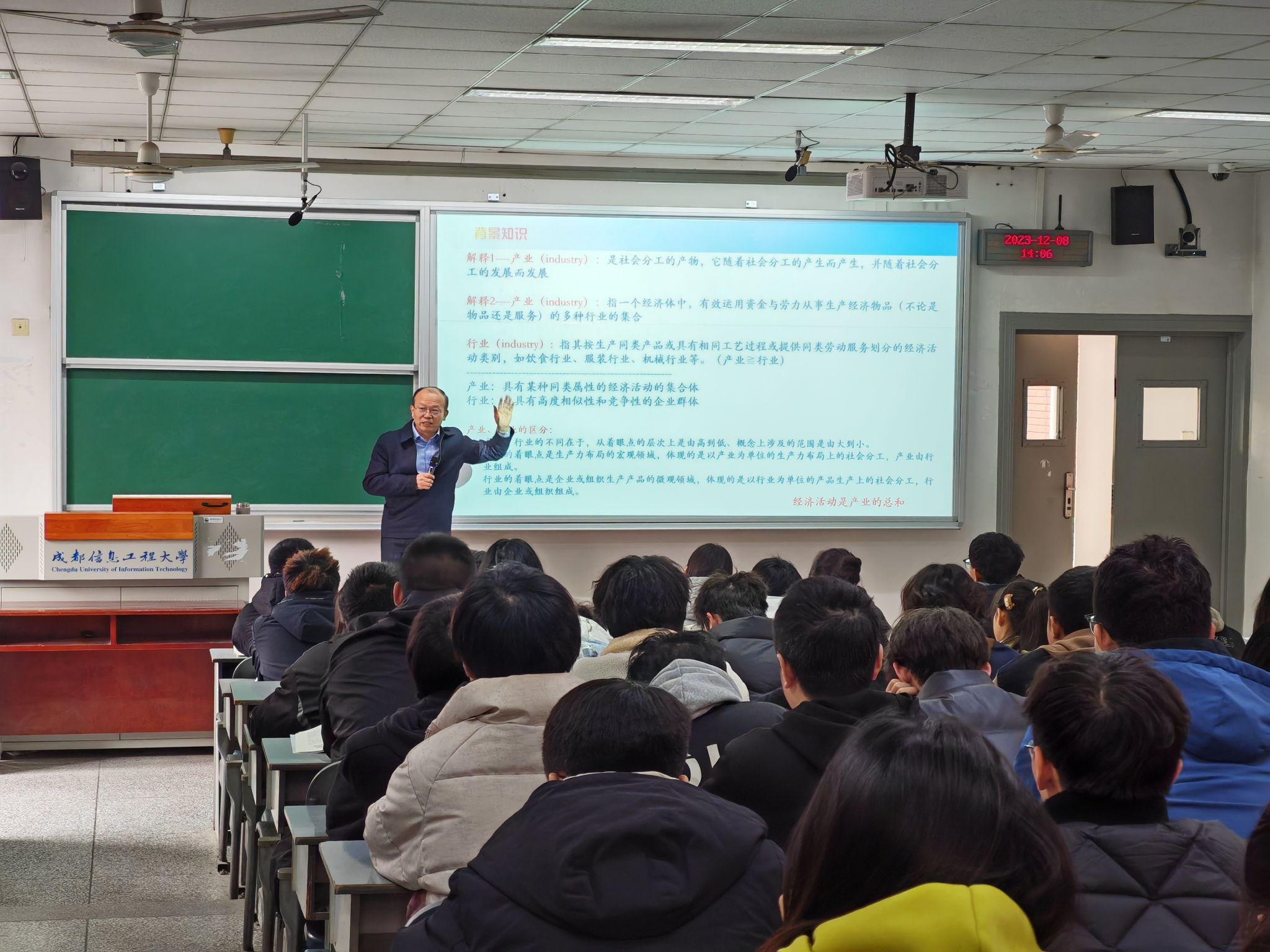 12月8日下午,学校校长何建新在1209教室为电子工程学院2022级本科生上了一堂题为“大力推进现代化产业体系建设”的《形势与政策》课。
