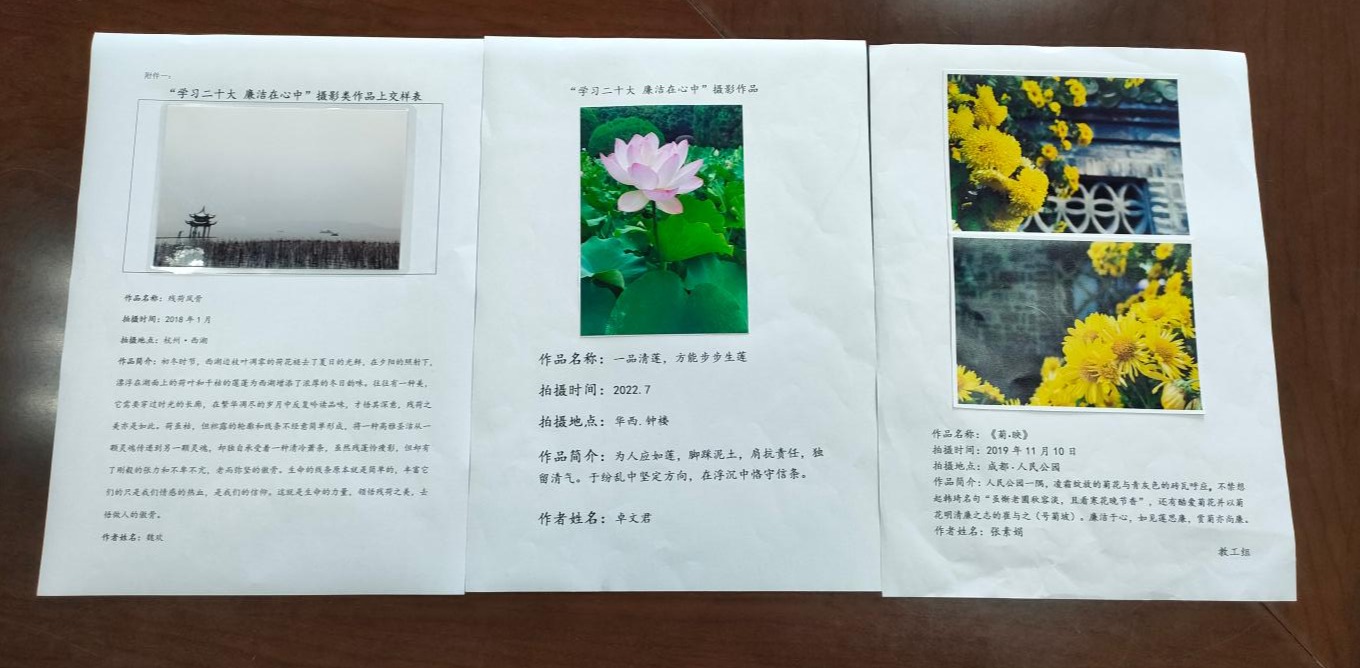 本次活动共包含两个内容:摄影比赛、党风廉政学习感悟征集。摄影作品以党风廉政建设为题材,学习感悟作品结合党的二十大报告中关于党风廉政的内容,提交个人学习感悟。活动中学院收到了来自学院教师和学生的摄影类作品24份、学习感悟类作品56份。