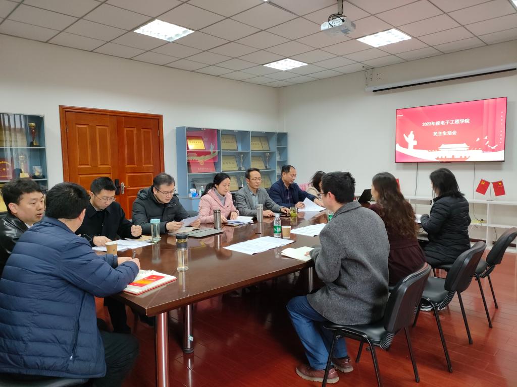 电子工程学院2022年度民主生活会于2023年3月2日上午在气象楼216会议室召开,学院4名处级党员领导干部缪燕平、杨勇、史朝、杨智鹏参加会议。学院非党员处级领导干部张福贵,学院党委班子成员卢会国、鲁波、阮丽娜列席会议。学校督导组成员张小红、陈曦,联络员殷东萍到会督察指导。会议由电子工程学院党委书记缪燕平主持。