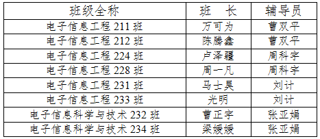 根据《成都信息工程大学关于进一步加强学风建设的实施意见》(成信校发〔2016〕107号)和《成都信息工程大学“优良学风班”、“十佳文明(学风)班”评选办法》(成信校发〔2021〕115号)文件精神和要求,按照《关于评选2023-2024学年优良学风班的通知》 (成信学字〔2024〕16号)的相关要求,电子工程学院 2023-2024学年“优良学风班”评定经班级申请、学院答辩、评审工作小组投票,现将我院2023-2024学年“优良学风班”拟获奖班级名单予以公示。如有疑问,请于2024年12月2日至2024年12月4日到气象楼226办公室反映。联系人:张老师,电话:028-85961609。邮箱:zhangyaj@cuit.edu.cn。