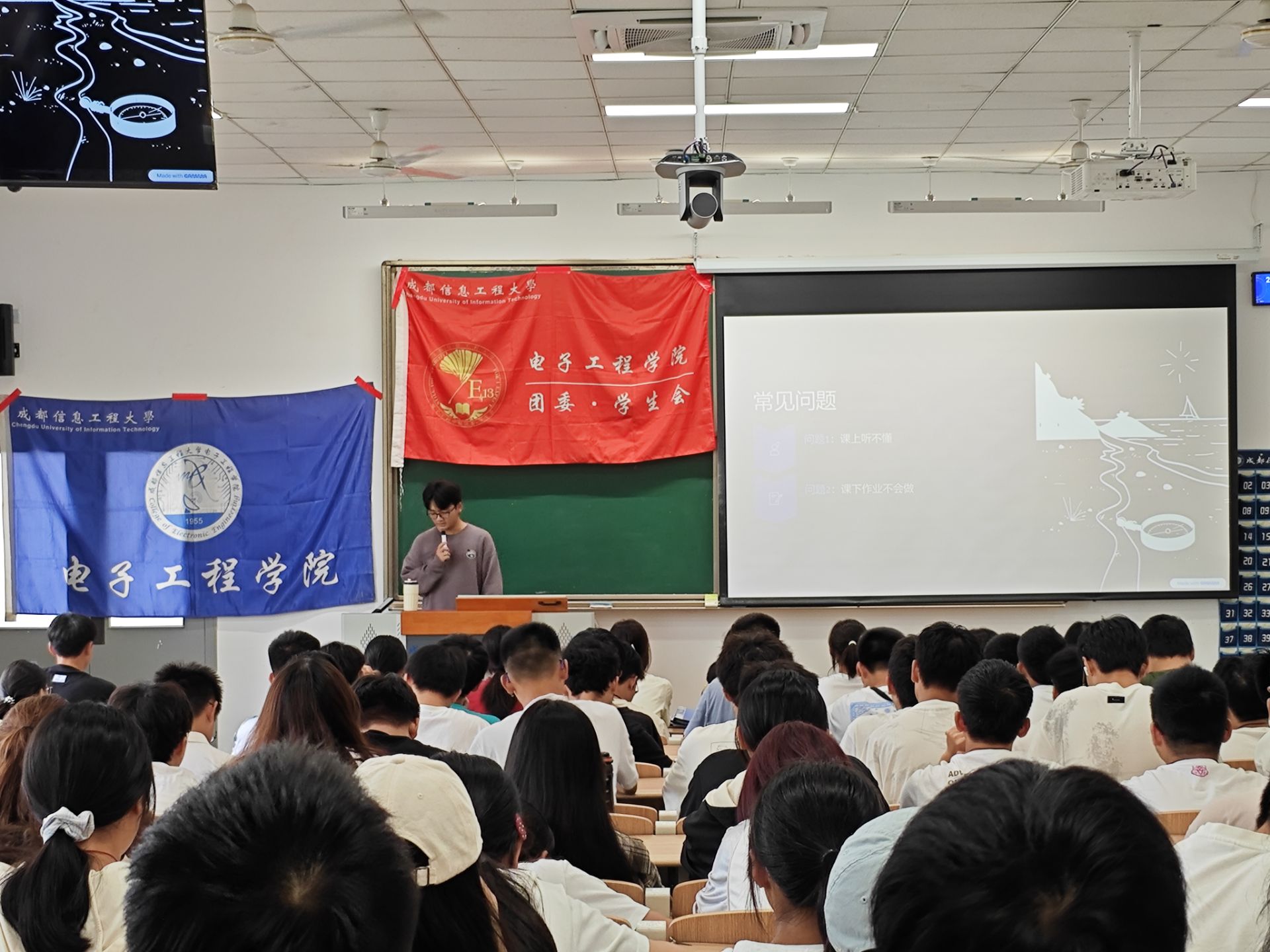 2025年10月9日,由成都信息工程大学电子工程学院团委学生会主办,电子工程学院督导部承办的大一、大二电子信息科学与技术专业学习经验交流会于14:00分别在2306和2307教室准时举行。10月10日,大一、大二电子信息工程专业的学习经验交流会于12:30在国际会议厅准时举行。参加本次活动的人员有大一、大二、大三学生和电子工程学院团委学生会督导部成员。