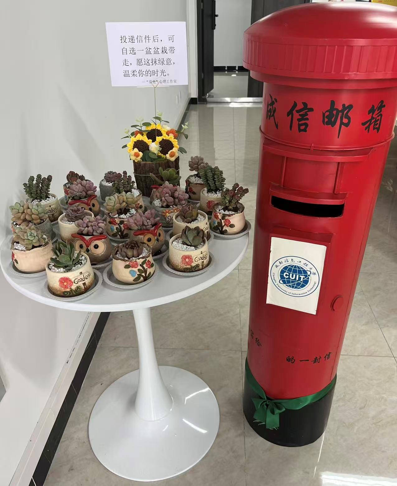 活动期间,学生们踊跃参与,将近期的烦恼、苦闷与困惑写在信纸上,投入新气象1208a“觅光”心理工作室的专用邮筒中。整个过程严格遵循匿名原则,充分保护了学生的隐私。作为参与的回馈,每位提交信件的同学都领取了一份精美盆栽,以绿植的生机与希望象征,传递温暖与治愈的力量。