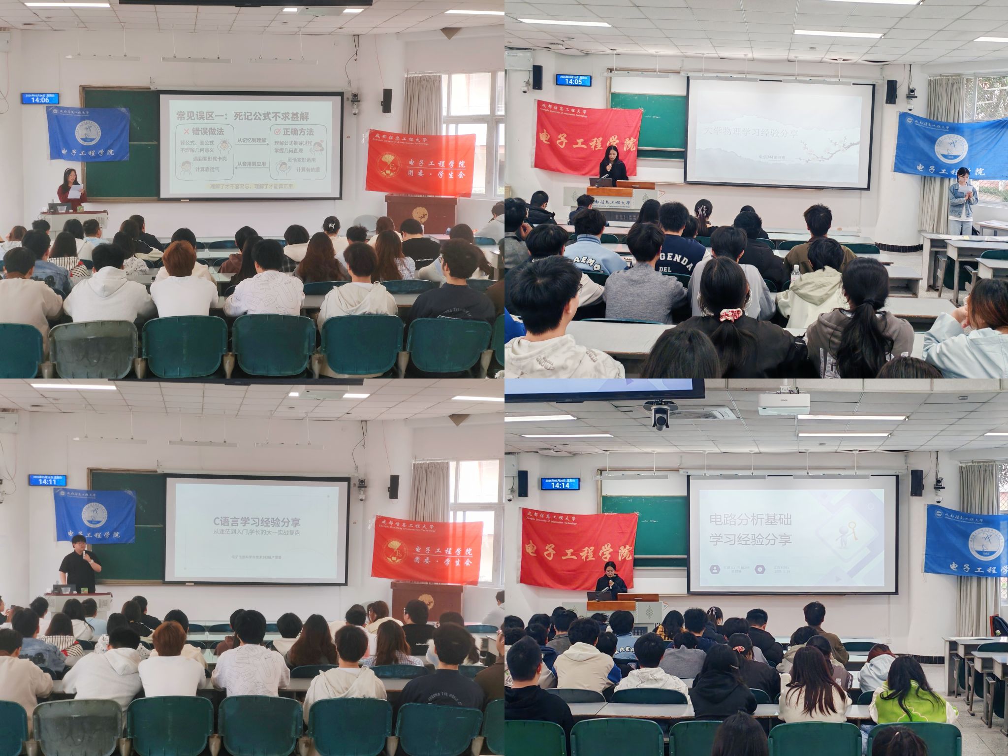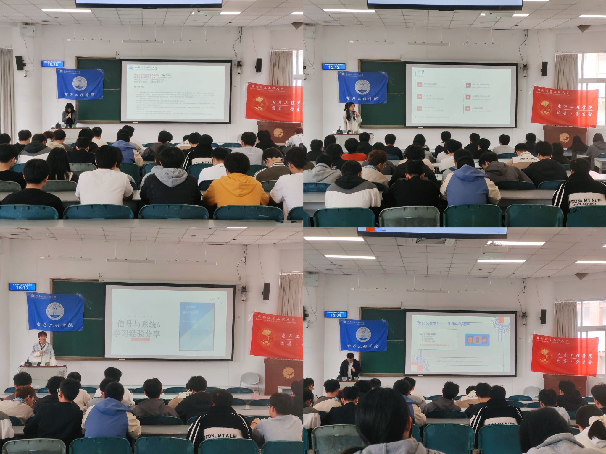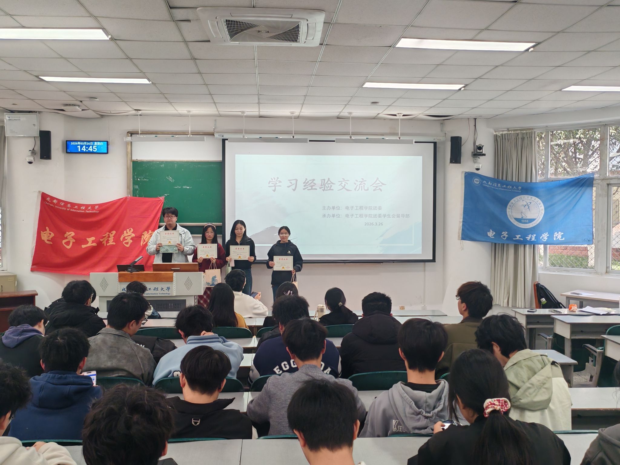 2026年3月26日,由成都信息工程大学电子工程学院学生会主办、电子工程学院督导部承办的学习经验交流分享会分别于在4313教室和4112教室准时举行。参加本次活动的人员有大一、大二及大三的同学和电子工程学院团委学生会部分成员。本次活动旨在帮助学生掌握学科学习方法,拓宽学习思路。