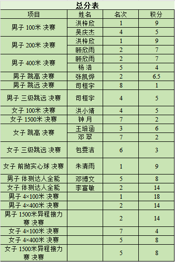 赛场上,我院运动员在短跑、长跑、跳跃、等项目中奋勇拼搏。运动员们凭借扎实的训练基础,稳定发挥、不断超越自我,在男子100米、男子200米、男子4×100米、女子前抛实心球等多项比赛中夺得桂冠。