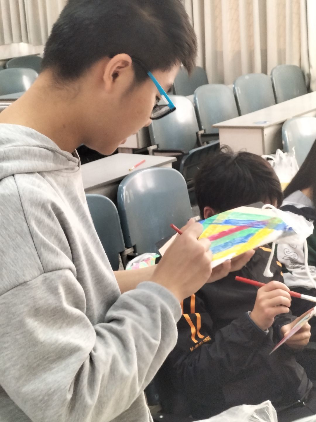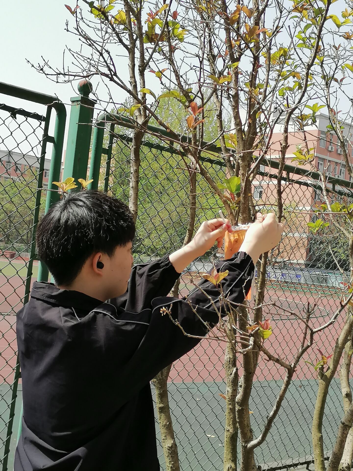 在活动开始前,志愿者们先去学校周边观察,调查了校园内的树种,并且用A4纸、绳子和防水塑料袋制作了多个树牌,为后续工作作保障。27日下午2点,志愿者们在教室开展了画树牌的活动,此次活动面向全校,参与人员是由青志协电子分会的五人和报名活动的四人组成。大家都绞劲脑汁,先用颜料在树牌上画出好看的图案,再由写字比较好的人在树牌上写上环保标语和事先调查出来的树的种类和简介,最后再把树牌晒干,完美的树牌就制作完成了。28日上午10点,由青志协的三名志愿者带上树牌去校园各个地方挂树牌,现在大家在校园里就可以看到这些由干事们精心制作的树牌了呢。
