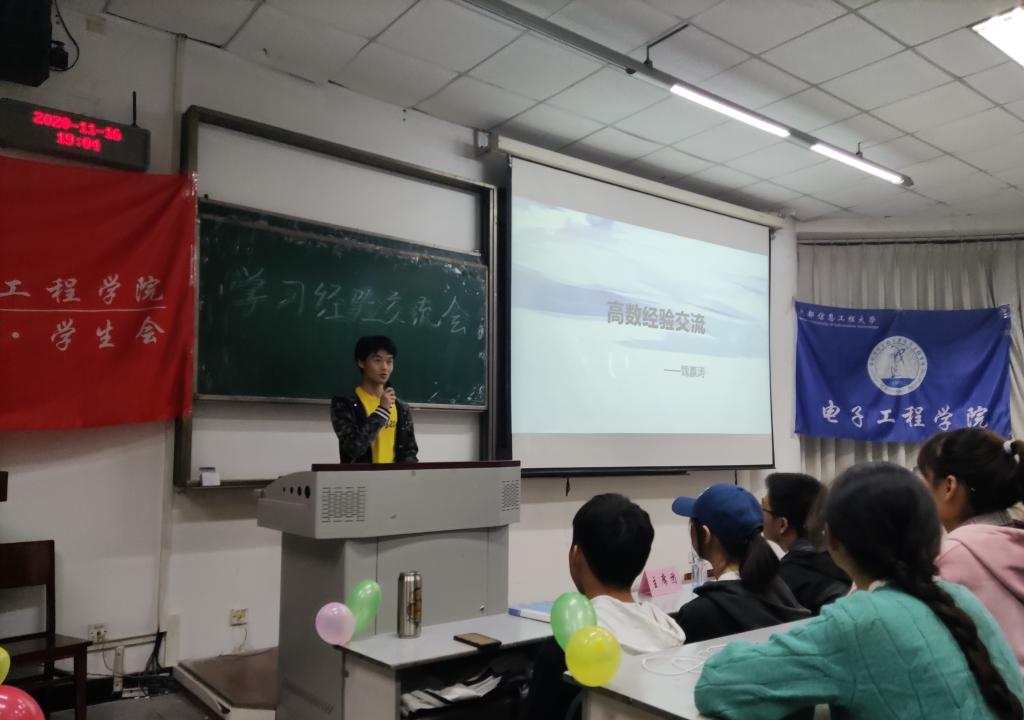 【本网讯】2020年11月16日晚7点,电子工程学院学生会学习部和文艺部在4213、4313联合举办了“学习经验交流会”。出席此次活动的嘉宾有电子工程学院党委副书记杨勇老师,2020级电信辅导员卓文君老师和电科辅导员姚亚岚老师。